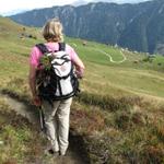 wir verlassen nun die Alpstrasse und biegen in den Wanderweg ein der uns auf den Piz Fess bringen wird