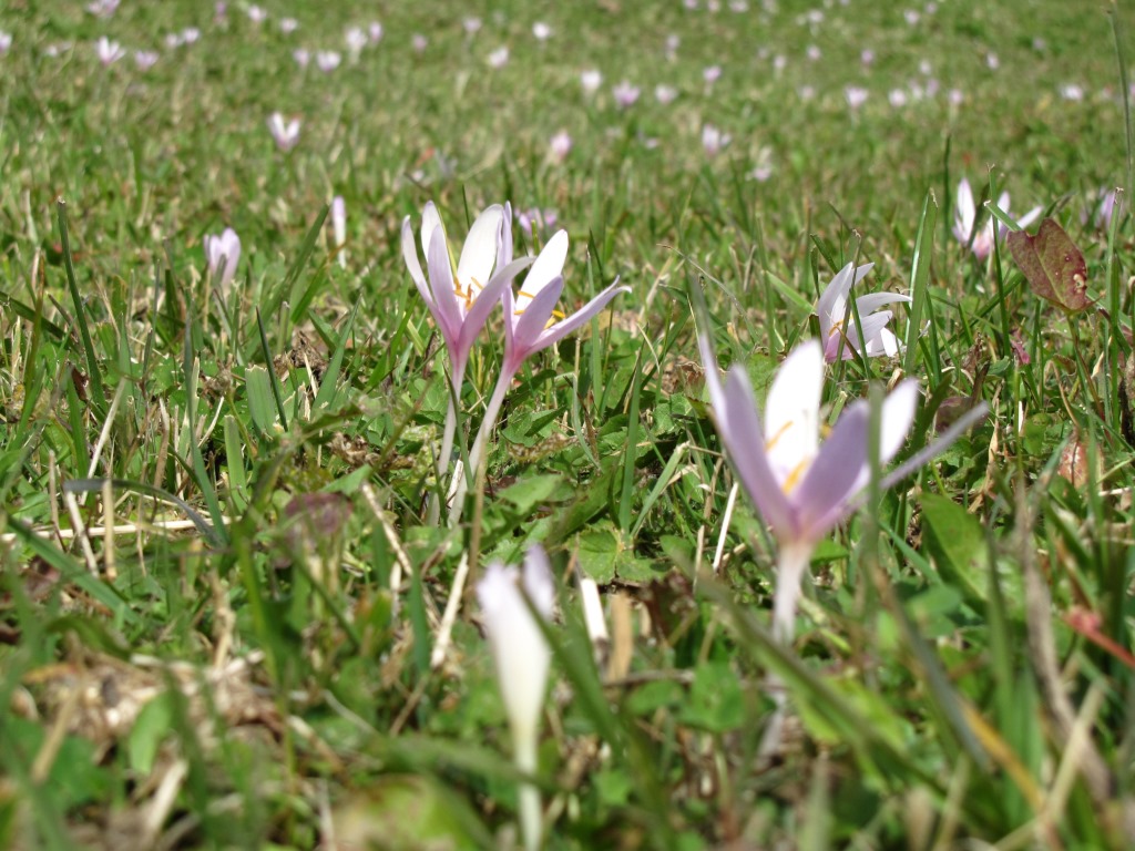 die Wiese ist übersät von der Herbstzeitlose. Schöne Blume aber giftig