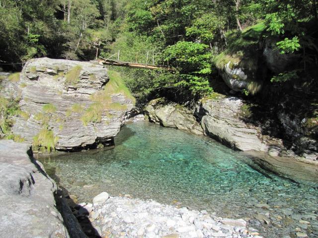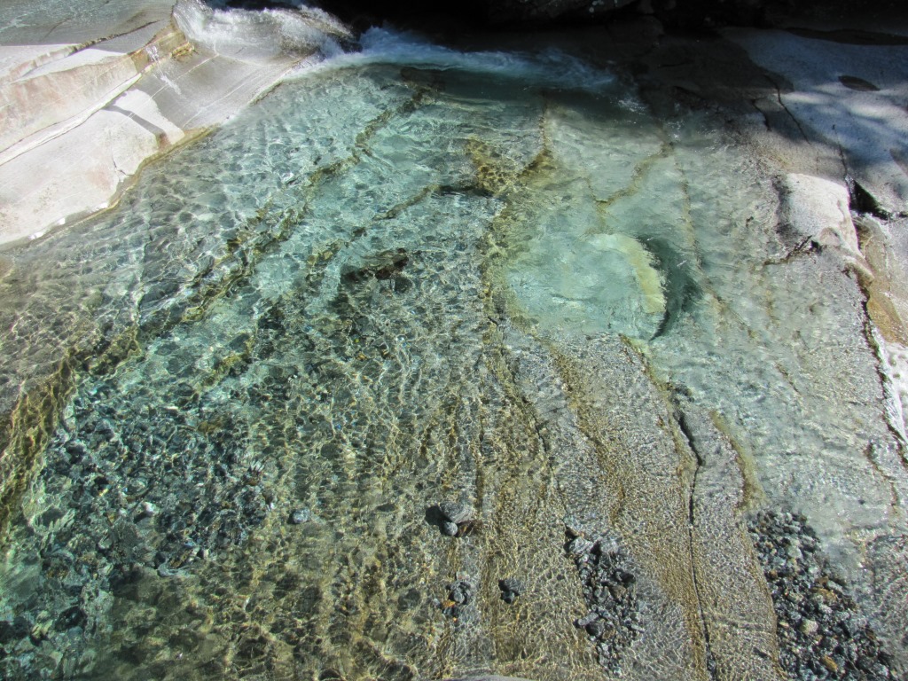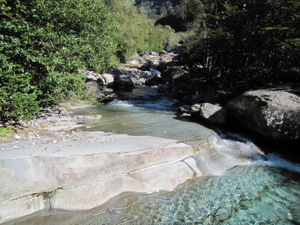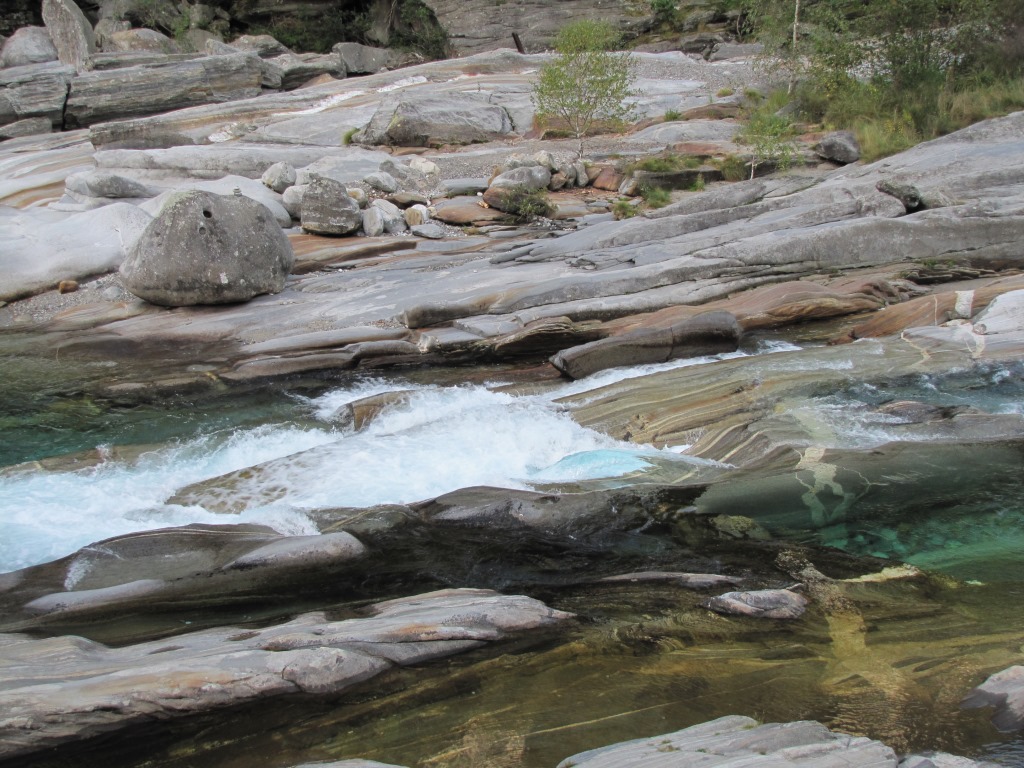 die Verzasca zeigt sich hier von der friedlichen Seite. Aber Achtung, schon viele Menschen haben hier das Leben gelassen Datum 06.03.2015