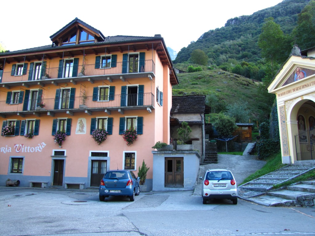 kurz vor dem Ortseingang von Lavertezzo steht die Osteria Vittoria Datum 06.03.2015