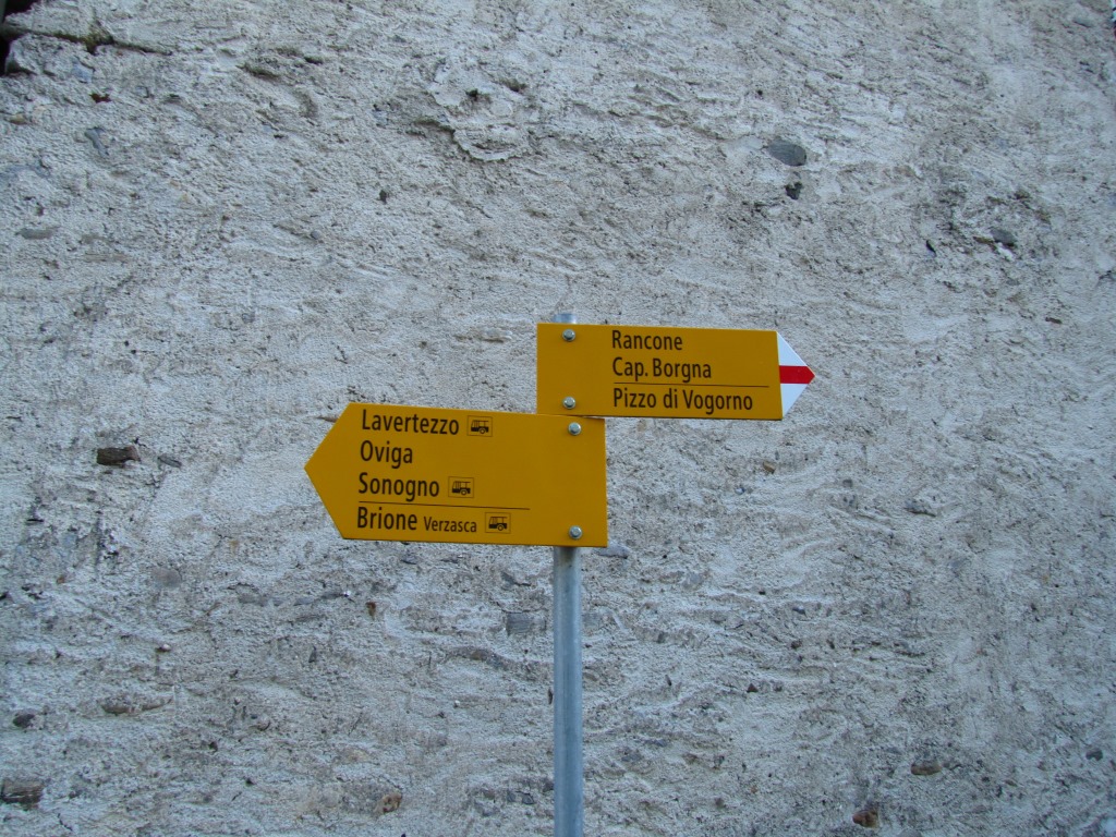 direkt daneben steht dieser unscheinbare Wegweiser. Pizzo d'Eus steht nicht darauf, aber Rancone unser erstes Ziel Datum 06.03.2015