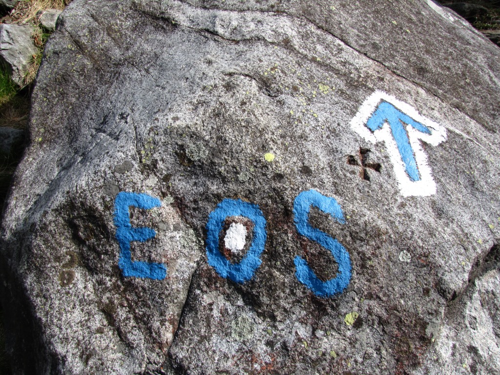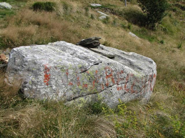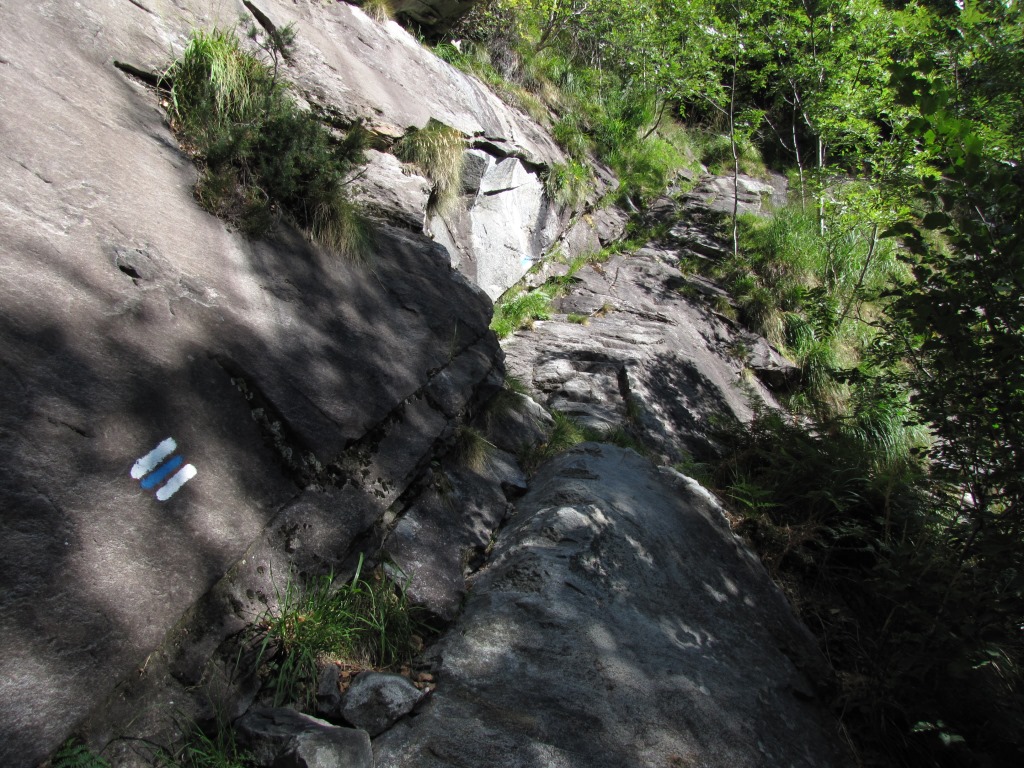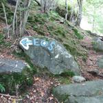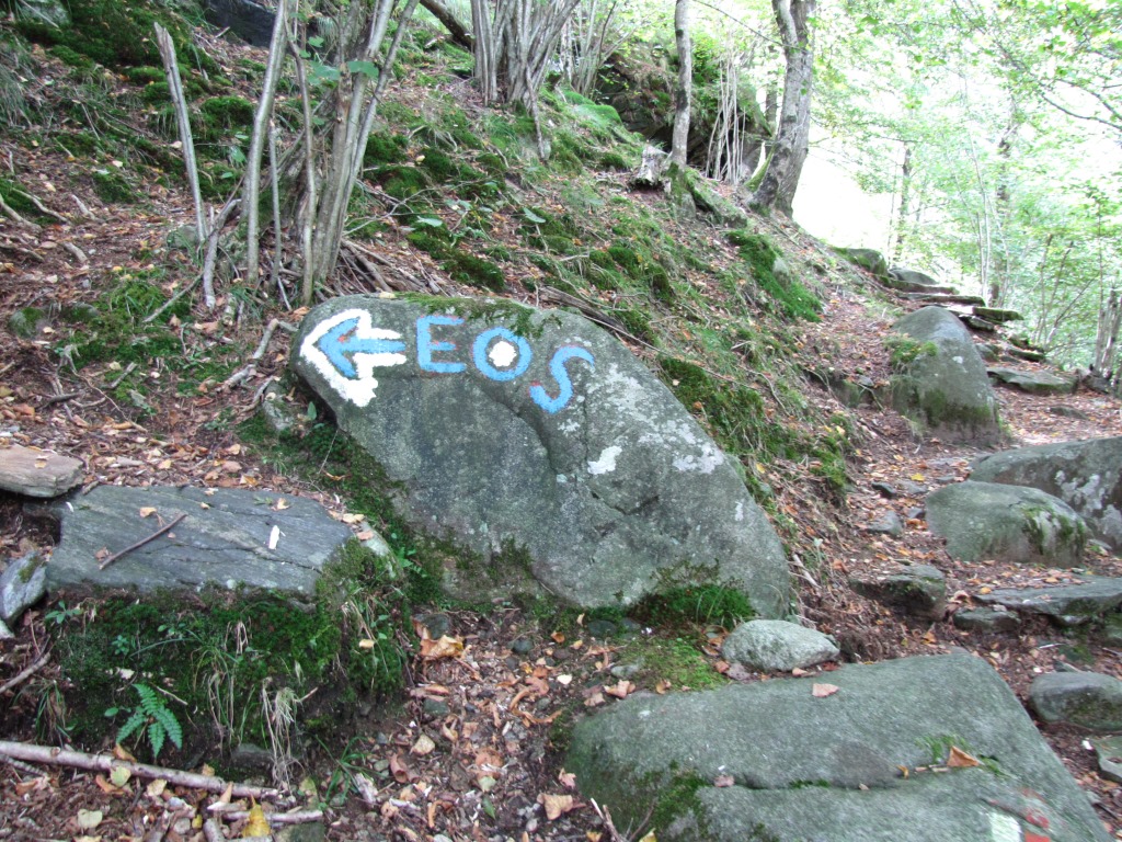 kurze Zeit später, erscheint diese Markierung. Hier nach links abbiegen, nicht weiter ins Val Carecchio!, hinauf nach Rodana Datum 06.03.2015