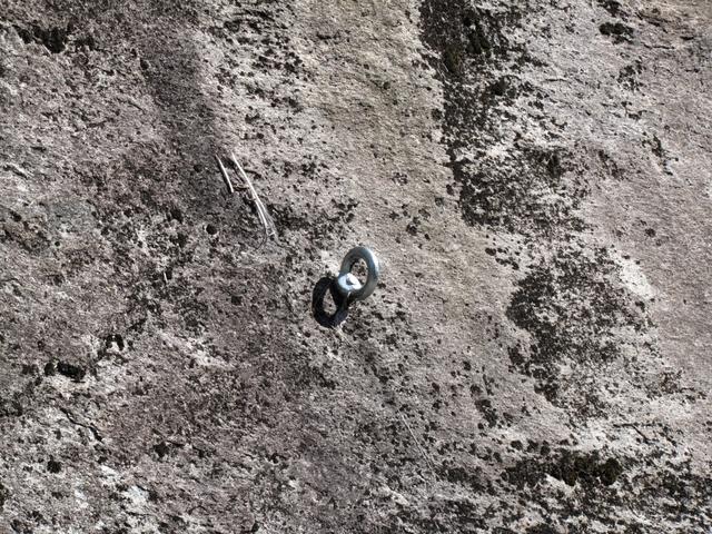 in der Mitte der Felswand ein Steinhaufen. Mit einem herzhaften Sprung erreichten wir die Steine Datum 09.03.2015