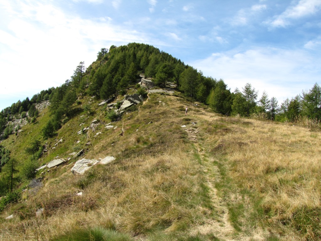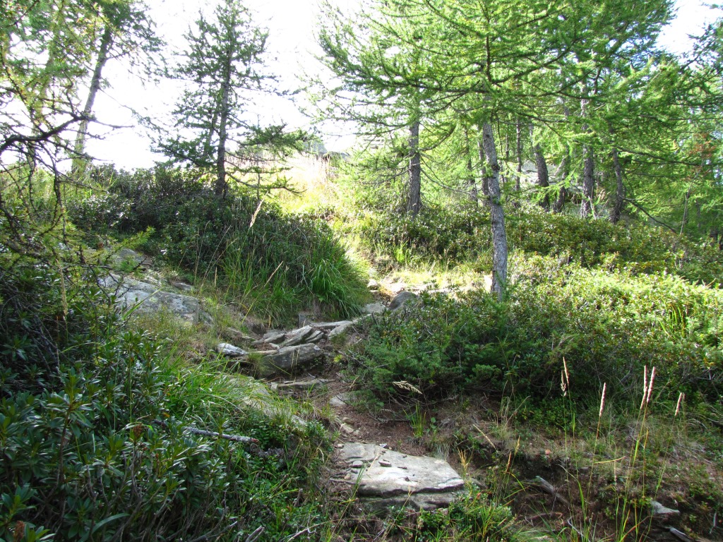 auf einem schönen, einfachen Weg durch einen kleinen Lärchenwald laufen wir zum Pizzo d'Eus Datum 09.03.2015