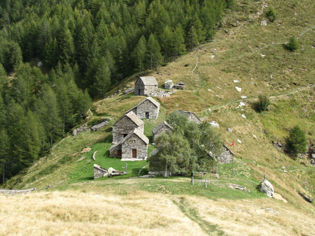 Blick hinauf zur verlassenen Alpsiedlung Arossa Datum 09.03.2015