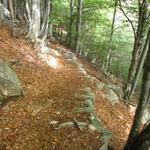 zum Teil sind noch die alten Steinstufen ersichtlich, die früher erstellt wurden, um auf die Alp zu gelagen Datum 09.03.2015