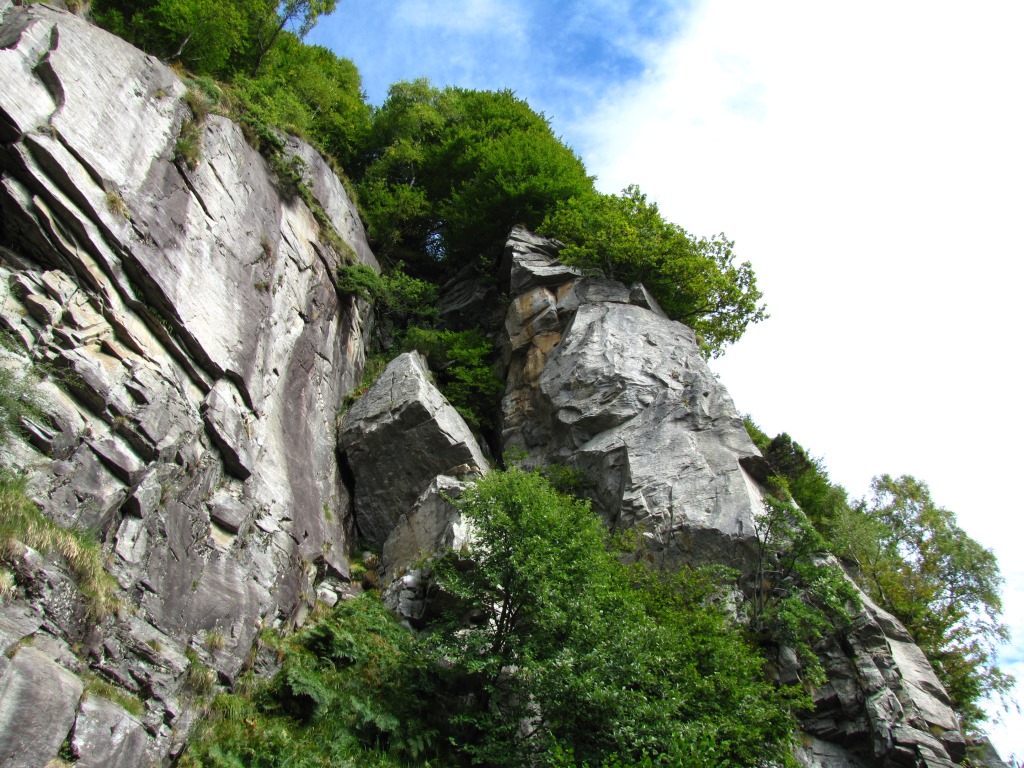 Blick hinauf zur steilen Felswand vom Pizzo d'Eus Datum 09.03.2015