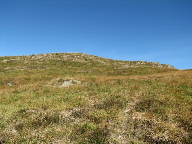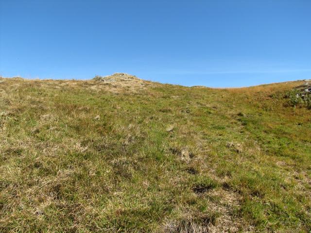 weglos über Alpweiden geht es weiter leicht aufwärts. Wanderung im Spätherbst durchführen. Anonsten zu heiss