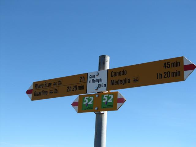 Wegweiser auf der Cima di Medeglia 1260 m.ü.M.