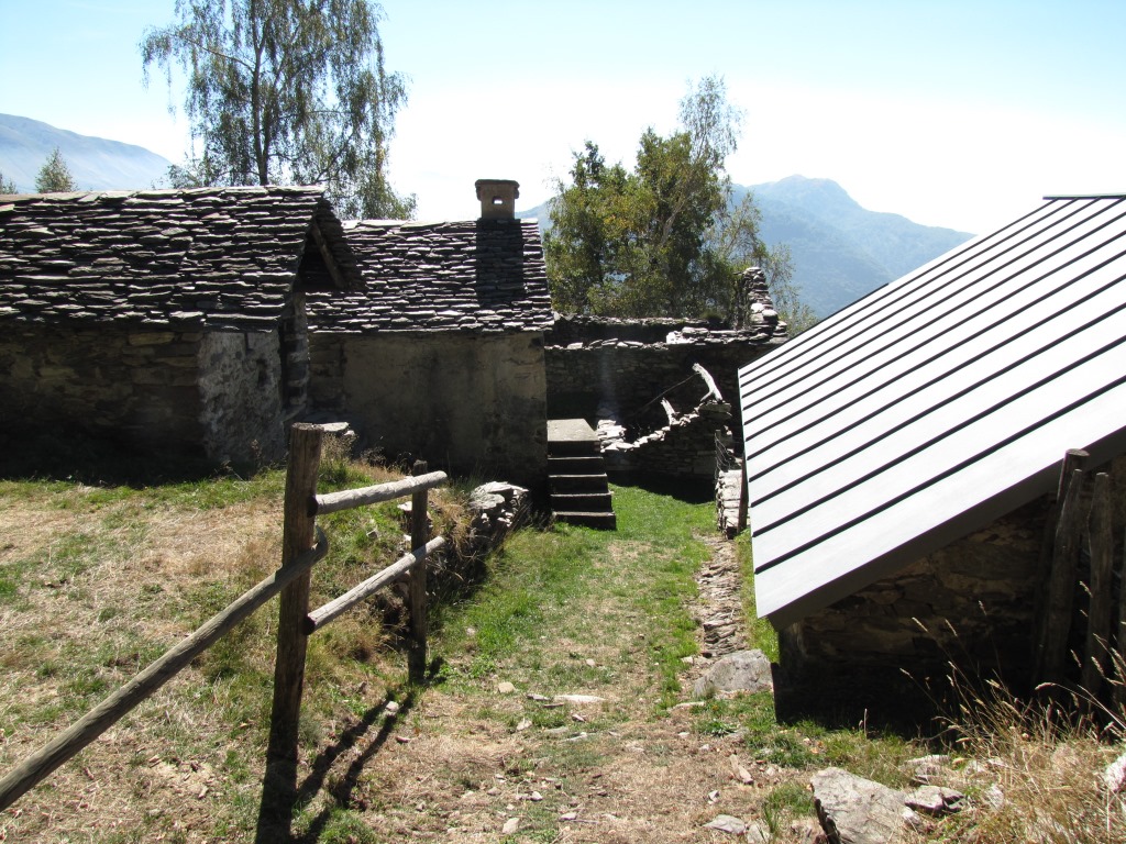 die Alphütte bei Sopra Canaa. Auf gleichem Weg wie der Aufstieg geht es nun abwärts nach Canedo