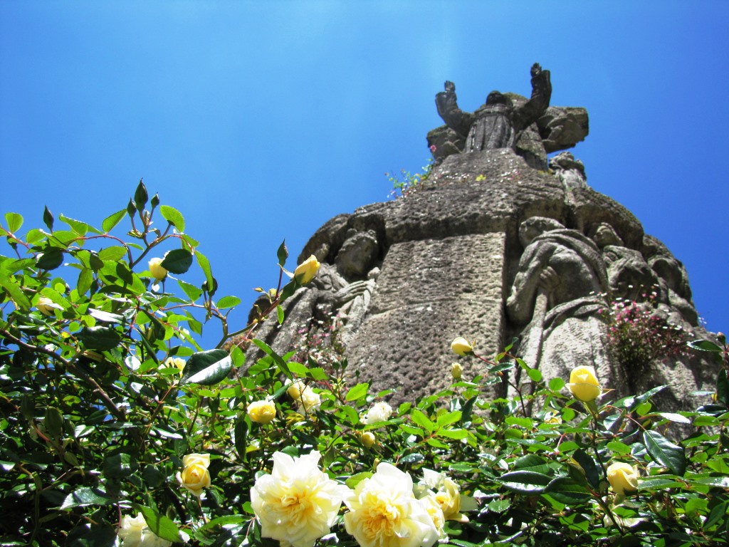 Blick hinauf zur grossen Statue des heiligen Franziskus, das sich direkt vor der Kirche befindet