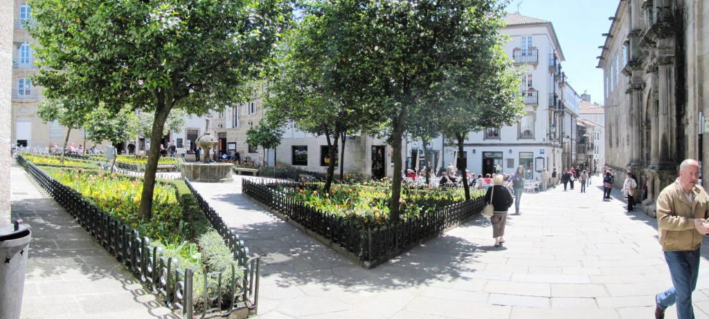 die Altstadt besitzt viele kleine Plätze. Breitbildfoto der Praza de Fonseca