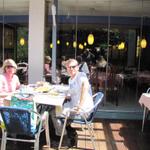 bei schönem Wetter sitzt man draussen und trinkt etwas