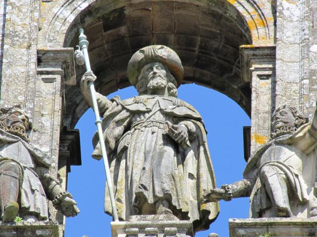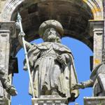 im Mittelgiebel erhebt sich das Standbild des Apostels Jakobus in einer Darstellung als Pilger
