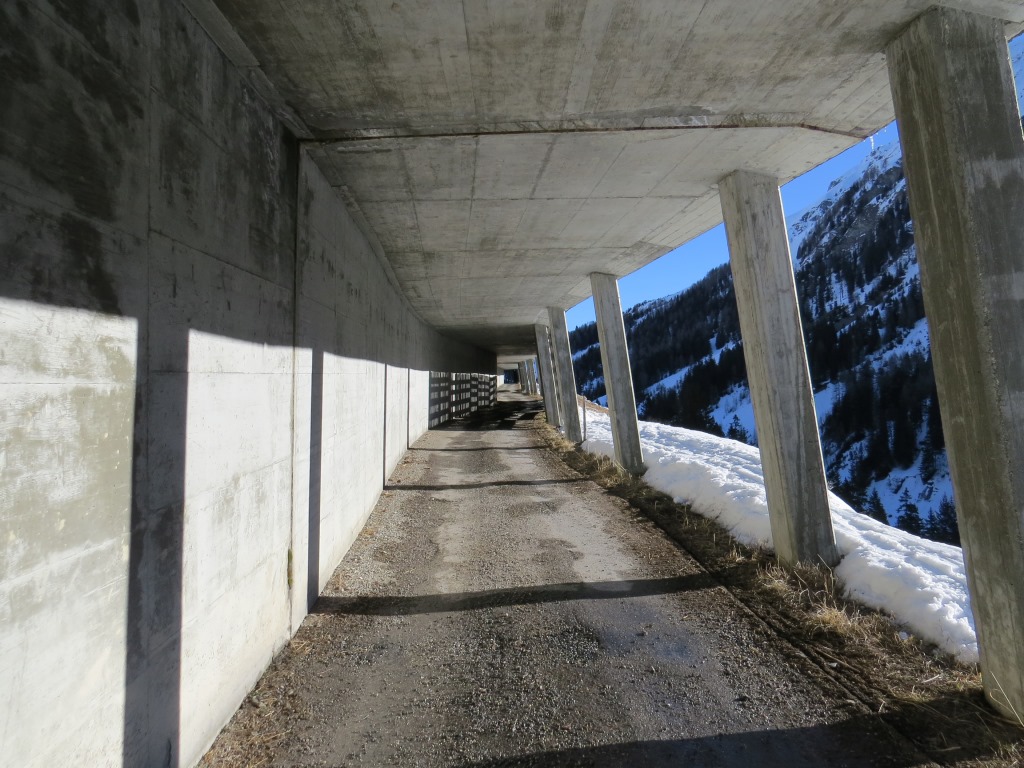zum Teil ist die Strasse durch Lawinenverbauungen geschützt Datum 26.03.2014