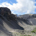 auf der linken Talseite sieht man gut den Einschnitt, durch den wir hinauf laufen werden Datum 19.09.2014