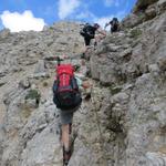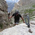 von der Forcella de Sieles führt uns ein stahlseilversicherter Steig weiter aufwärts Datum 19.09.2014