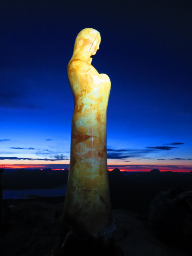 eine kleine Madonna Statue steht auf dem Piz Boè