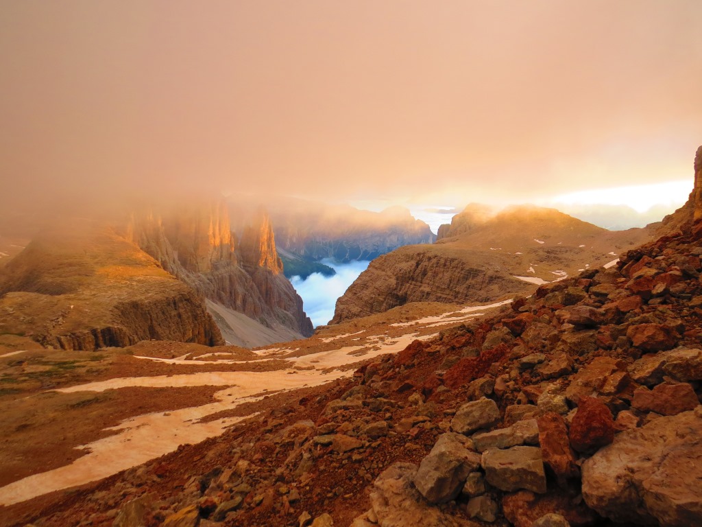 wir verlassen nun den Piz Boè und nehmen den Abstieg unter die Füsse