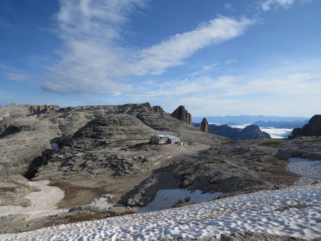 wir haben den neu erbauten Rifugio Viel dal Pan 2436 m.ü.M. erreicht