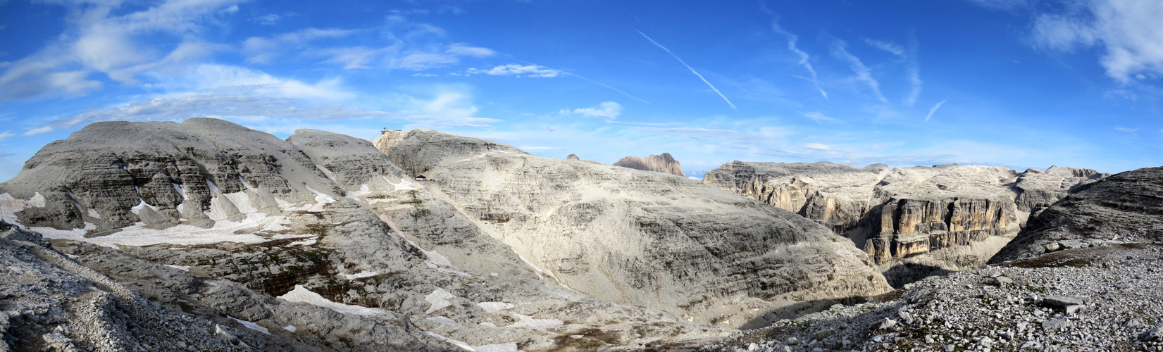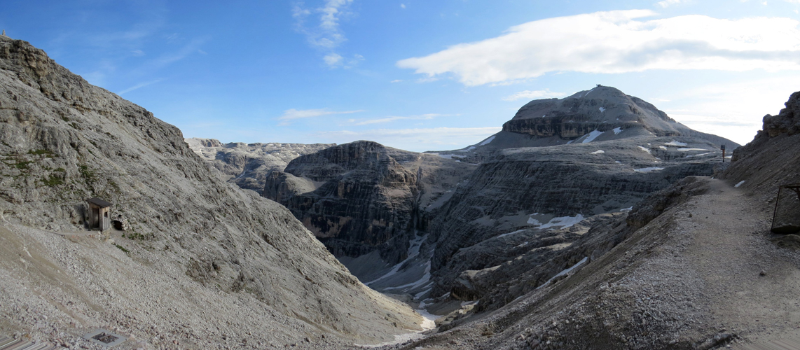 Breitbildfoto vom Rifugio Forcella Pordoi aus gesehen