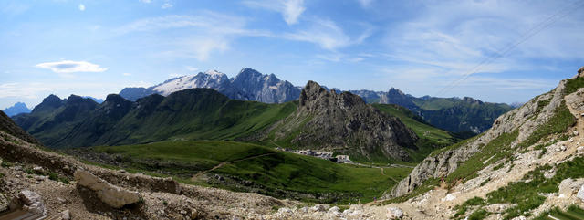 Breitbildfoto vom Rifugio Boè aus gesehen