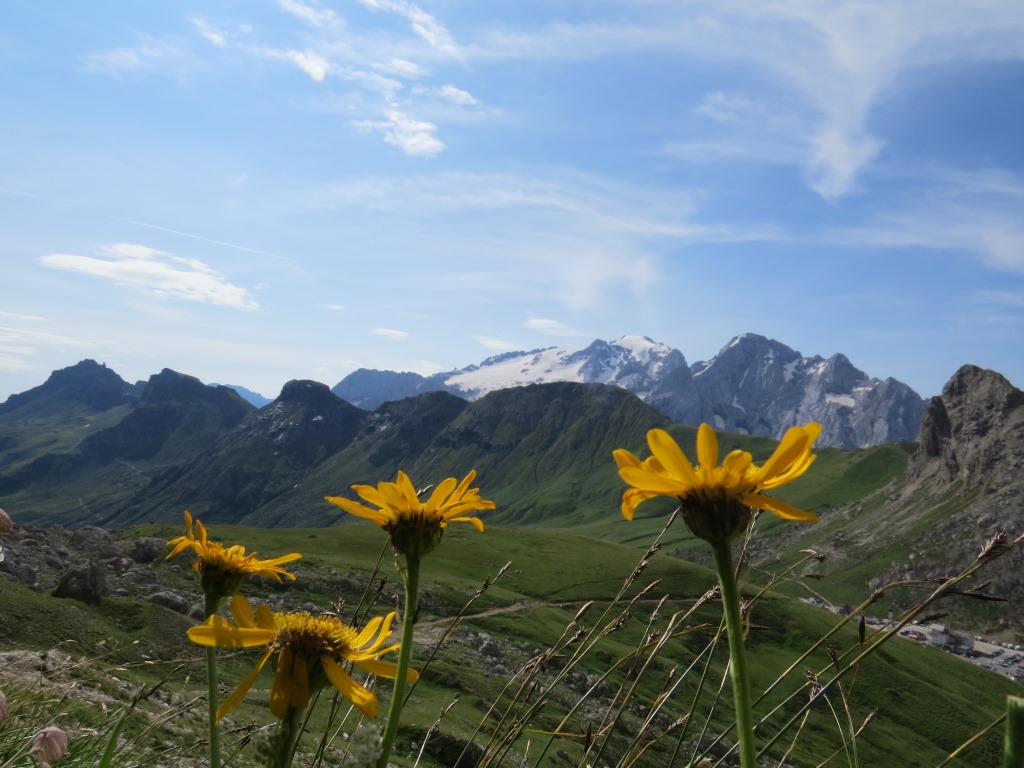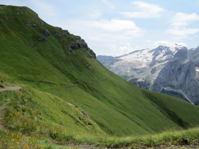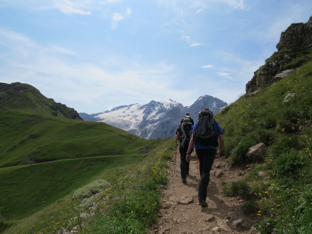 auf dem Weg zum Rifugio Fredarola. Im Hintergrund die Marmolada
