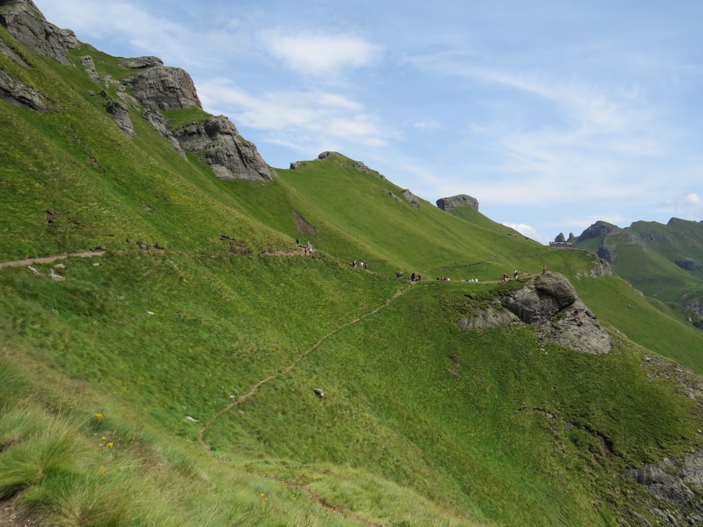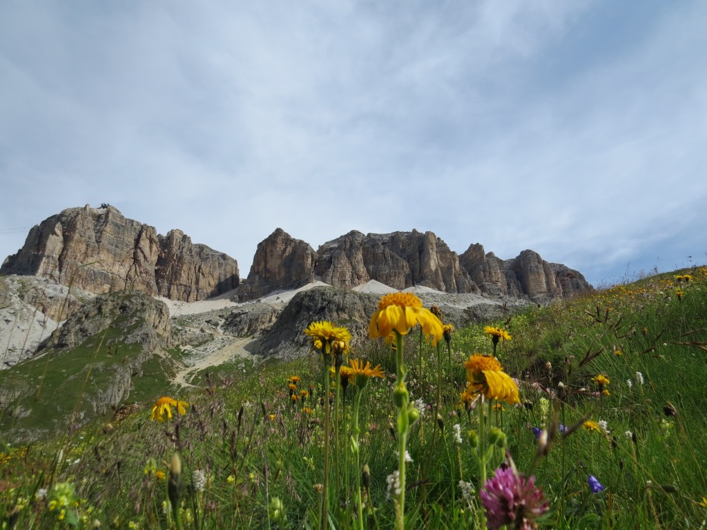 der Abstieg könnte man auch einfacher haben und mit der Luftseilbahn zum Pordoi Joch runterschweben