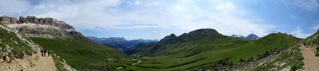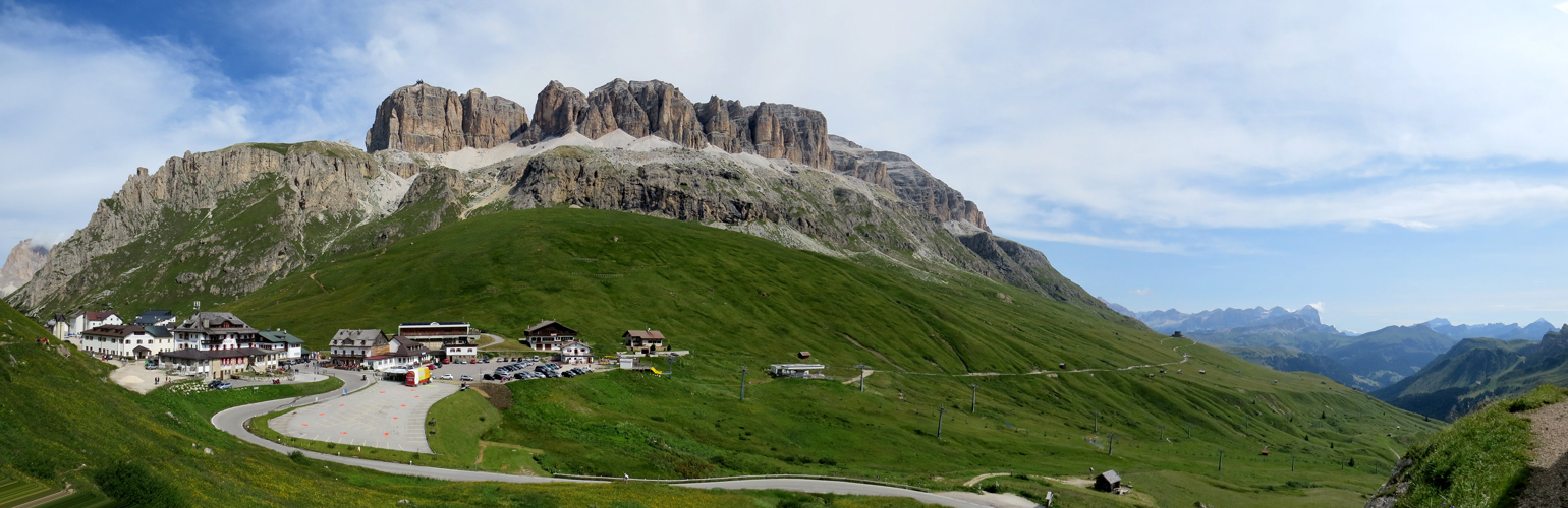 sehr schönes Breitbildfoto vom Pordoi Joch mit Sella Gruppe