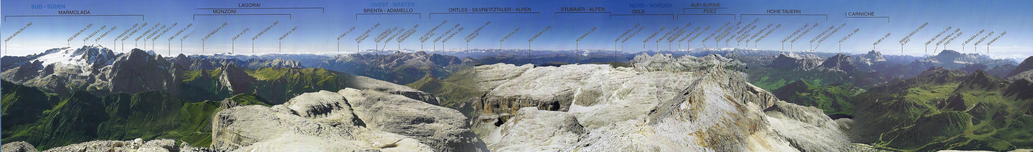Panorama vom Piz Boè bei Tageslicht (auf Vollgrösse klicken)