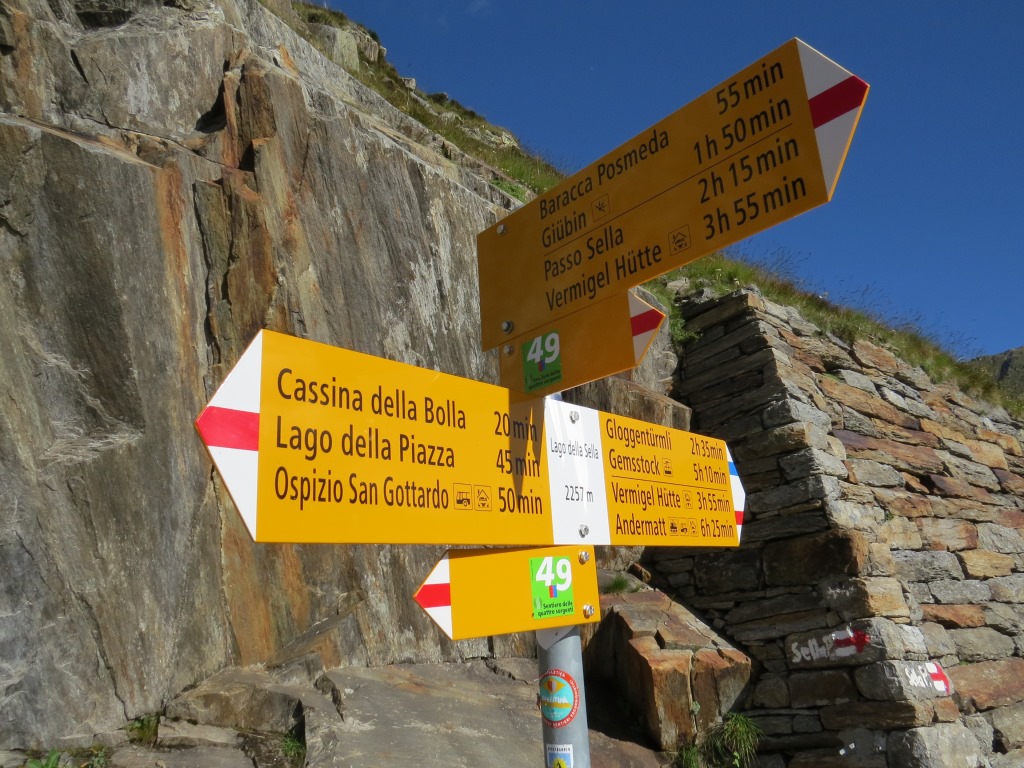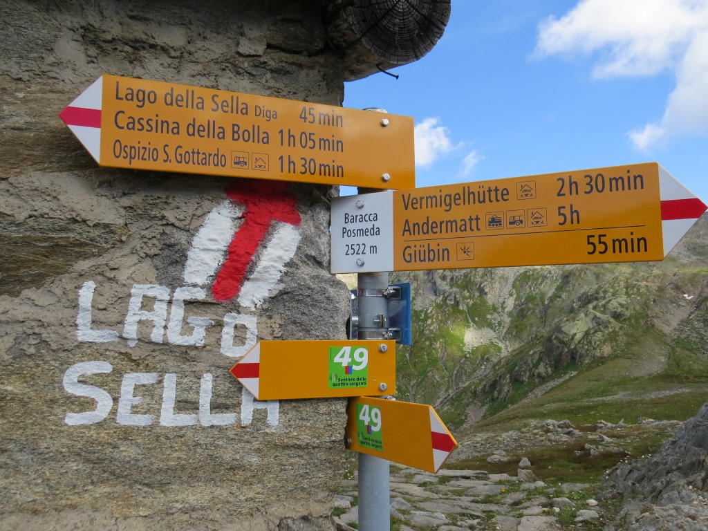 Wegweiser auf dem Gotthardpass 2090 m.ü.M.