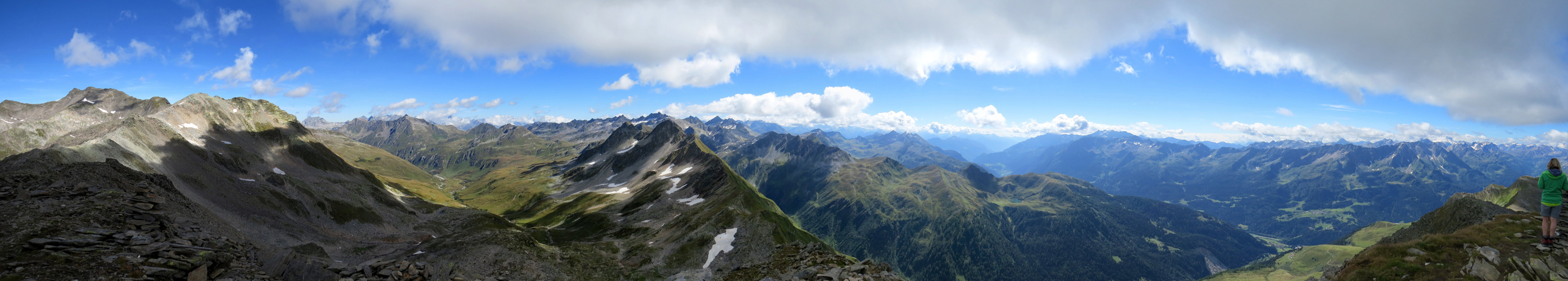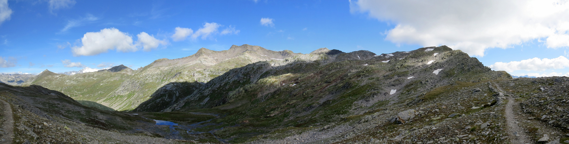 schönes Breitbildfoto vom Passo Posmeda 2585 m.ü.M. aufgenommen, mit Blick Richtung Giübin