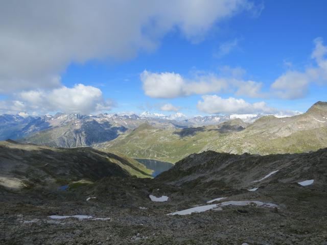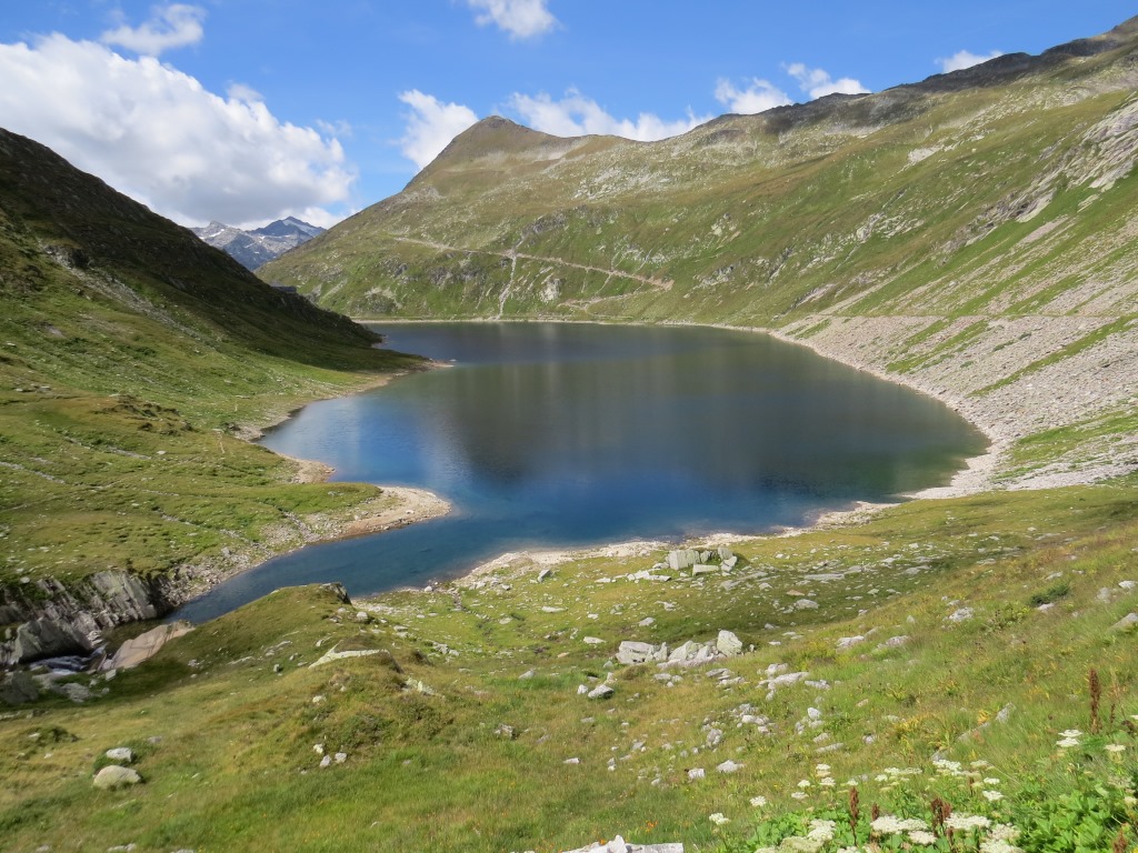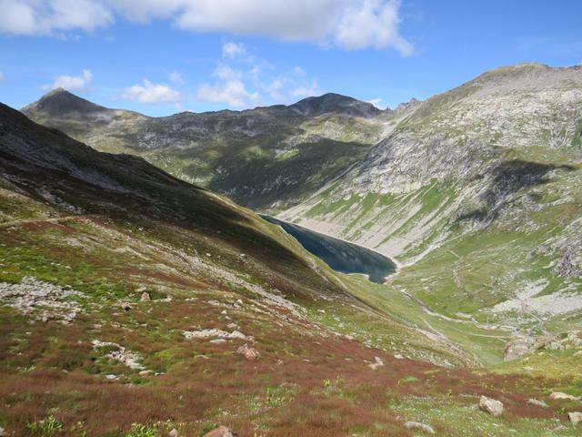 Blick auf den Lago della Sella. Gut ersichtlich der Weg den wir auf dem Rückweg machen werden