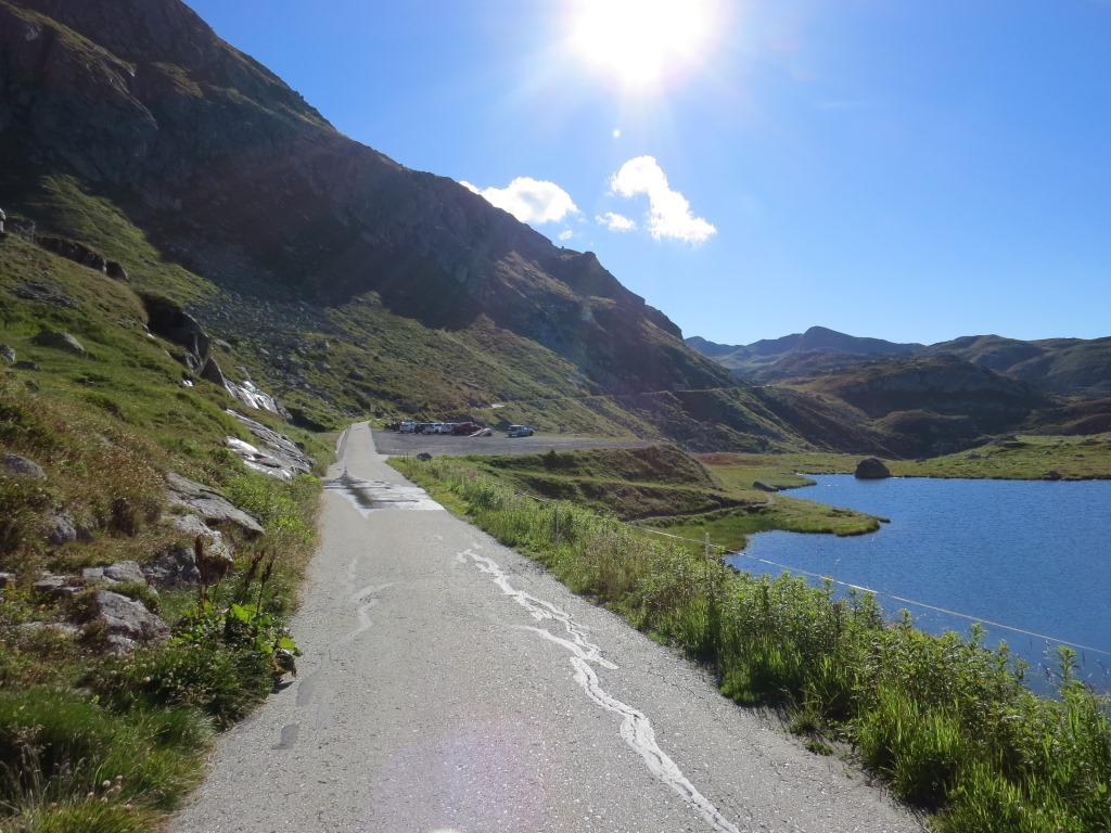 über eine Asphaltstrasse geht es zum Stausee Lago della Sella