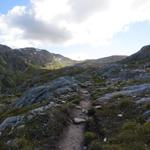 wir haben den Stausee hinter uns gelassen und wandern nun auf guten Pfaden zu den Laghetti degli Ovi