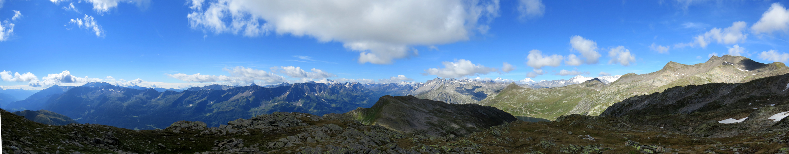 schönes Breitbildfoto vom Passo Posmeda 2585 m.ü.M. aufgenommen, mit Blick Richtung Giübin