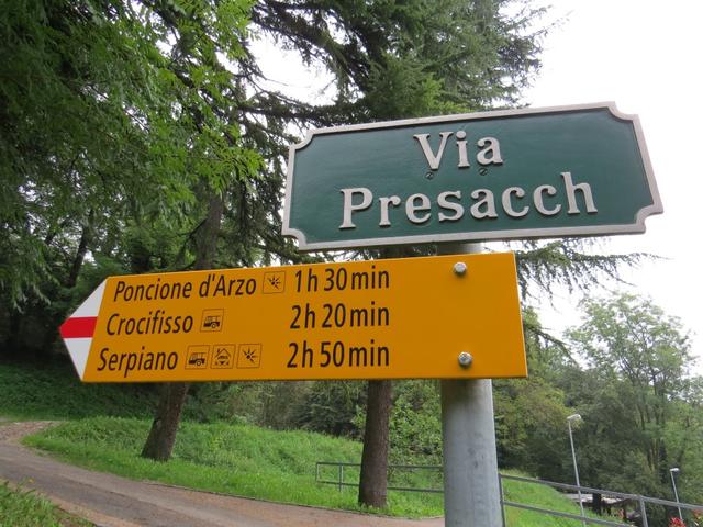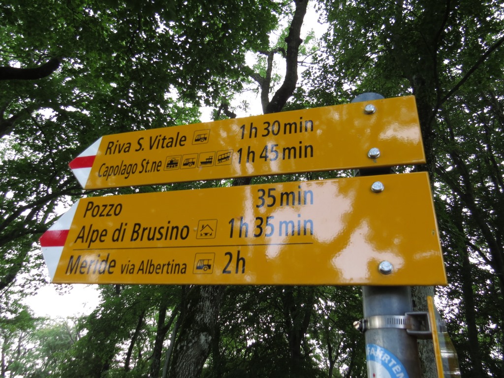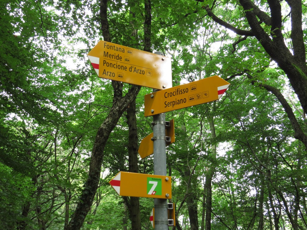Wegweiser in Arzo. Unser erstes Ziel ist die Costa di Prabello Datum 13.03.2015
