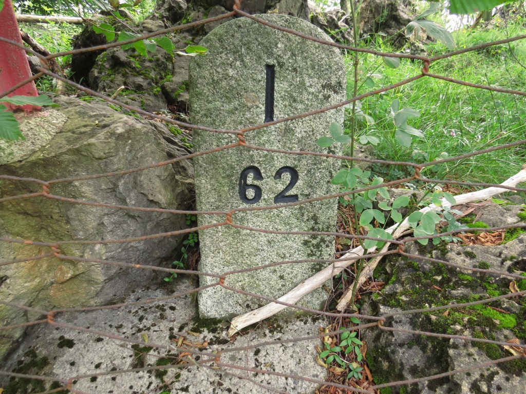 im Unterholz erkennen wir bei Punkt 887 m.ü.M. den ersten Grenzstein Datum 13.03.2015