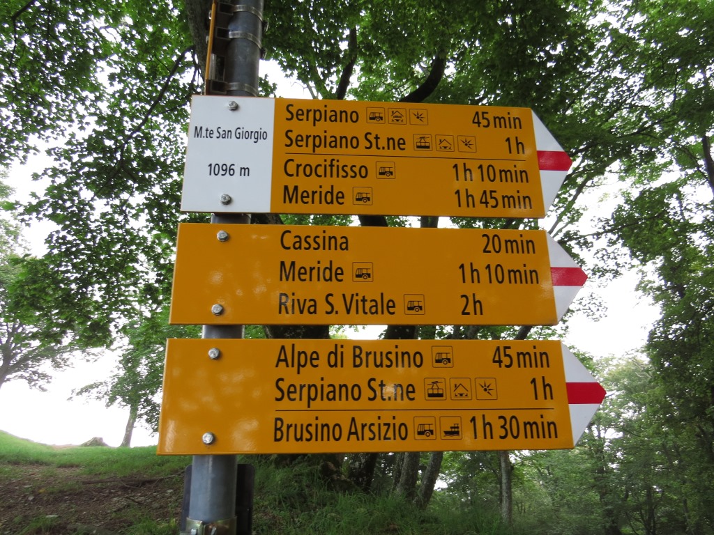 Wegweiser auf dem Monte San Giorgio 1096 m.ü.M. Datum 13.03.2015