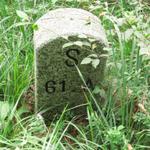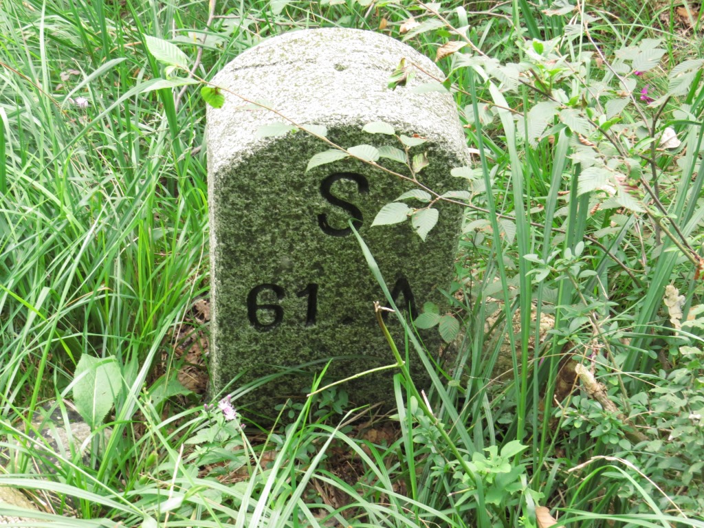im Unterholz erkennen wir bei Punkt 887 m.ü.M. den ersten Grenzstein Datum 13.03.2015