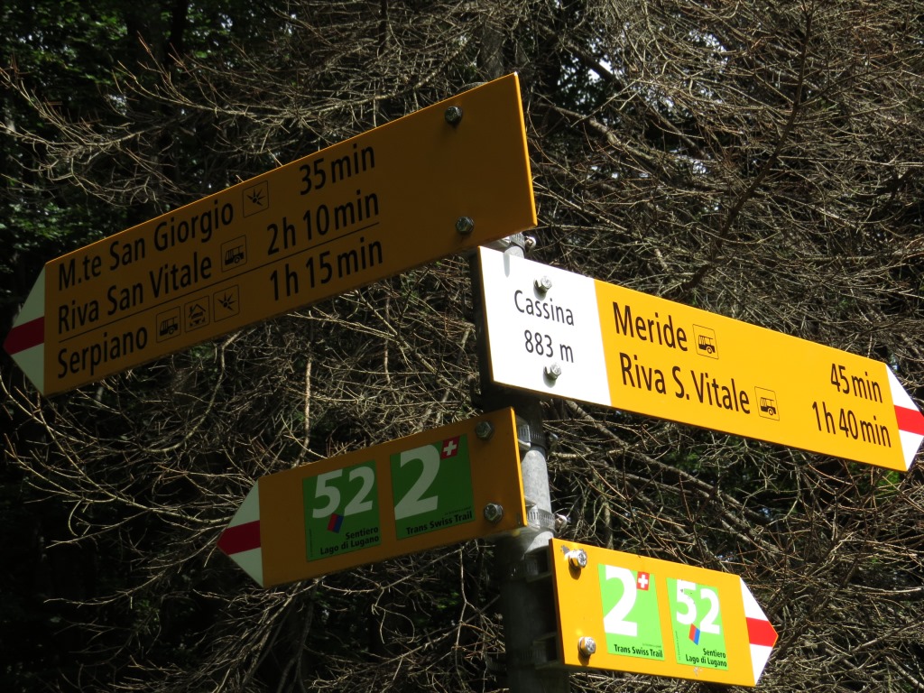 Wegweiser bei Cassina 883 m.ü.M. Datum 13.03.2015