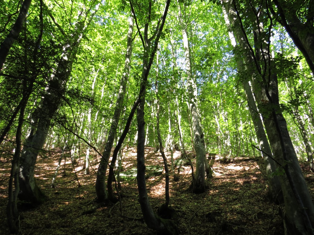 bei der Weggabelung biegen wir links ab Richtung Tacitt und tauchen in einen dichten Wald ein