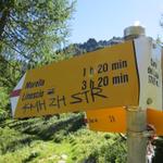 Wegweiser bei der Weggabelung auf Corte del Lago 1748 m.ü.M.