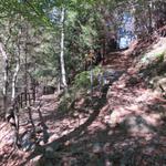 wie üblick im Tessin, führt der Wanderweg sofort in den Wald und sofort steil aufwärts