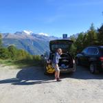 wir machen uns auf dem grossen Parkplatz auf der Moosalp bereit für die heutige Wanderung Datum 26.03.2015