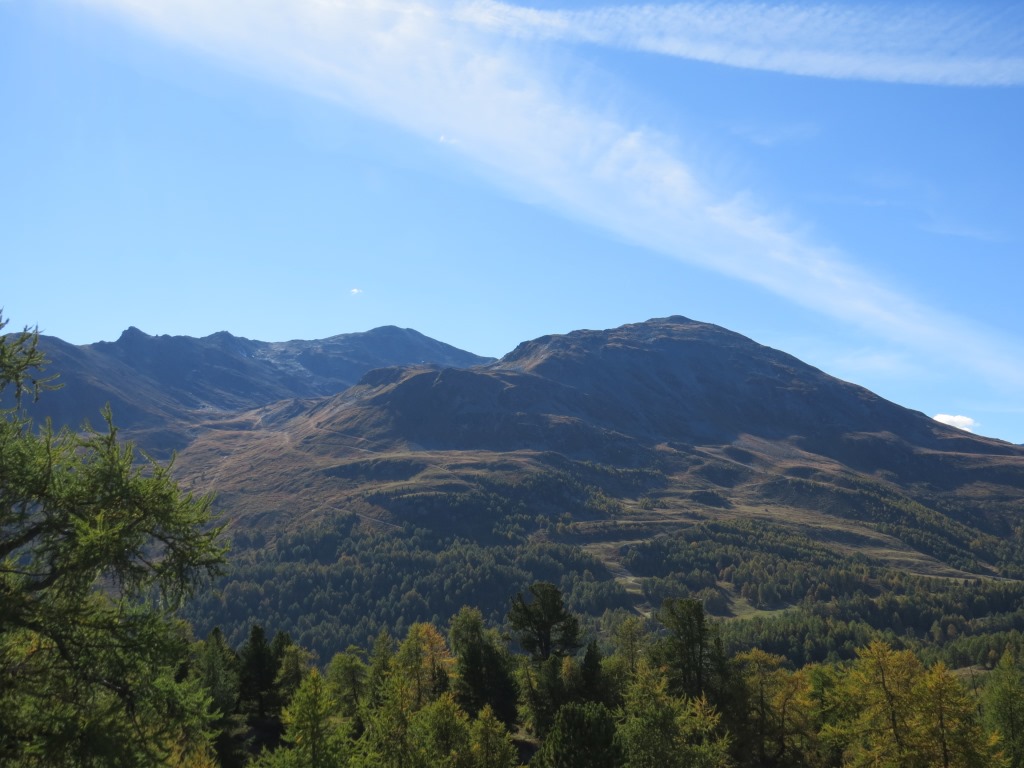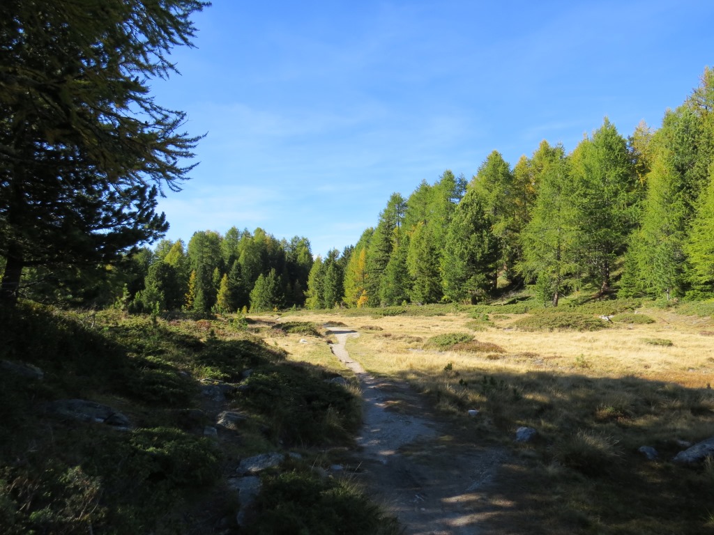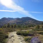 über die hügelige Landschaft und durch Lärchenwälder auf Bieltini auf dem Weg nach Stand Datum 26.03.2015