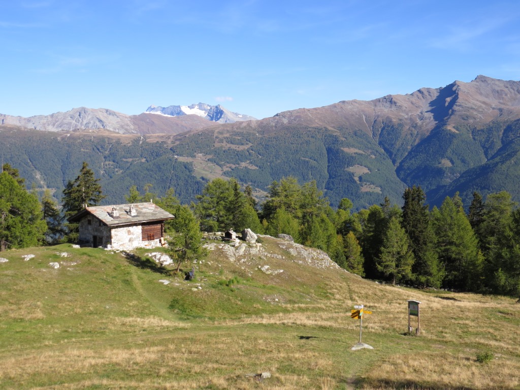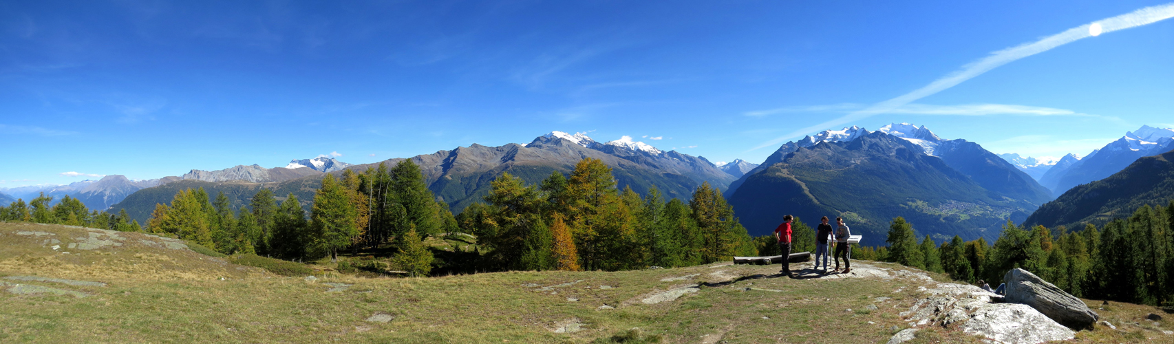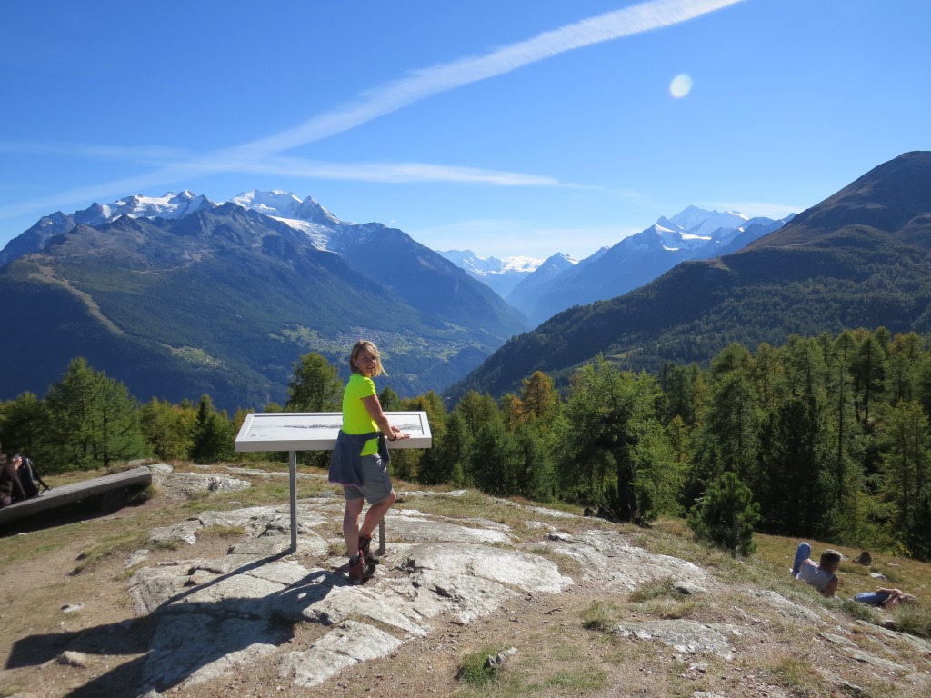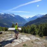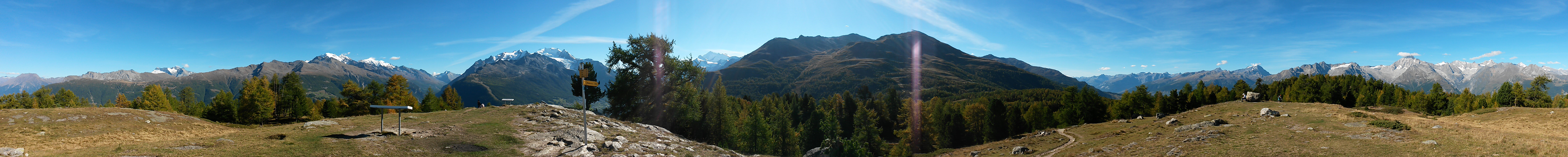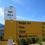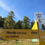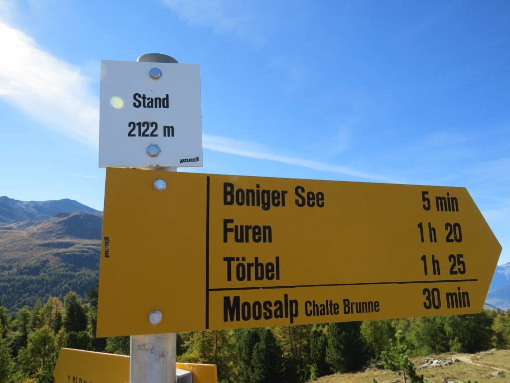 Wegweiser auf der Breitmatte 1993 m.ü.M. wir laufen nun zurück zur Moosalp Datum 27.03.2015