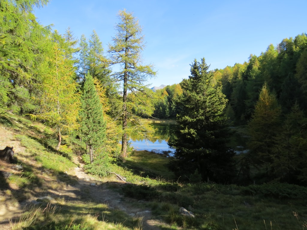 vor uns taucht der romantisch gelegene Breitmattensee auf Datum 27.03.2015