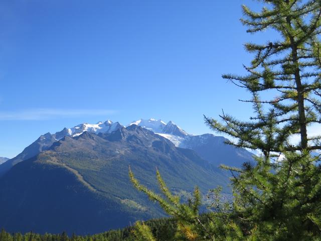 Blick auf Balfrin und auf das Mischabel Massiv mit Dom und Riedgletscher Datum 27.03.2015