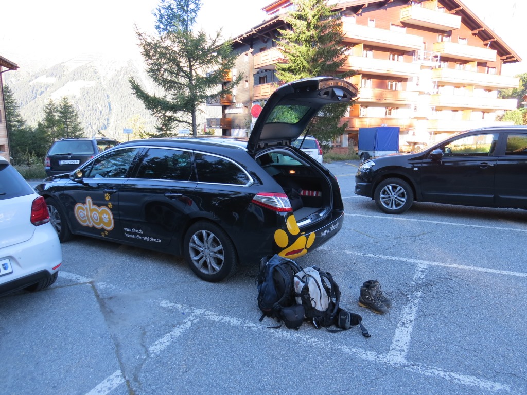 beim grossen Parkplatz neben der Talstation der Richinen Sesselbahn 1604 m.ü.M. in Bellwald Datum 27.03.2015